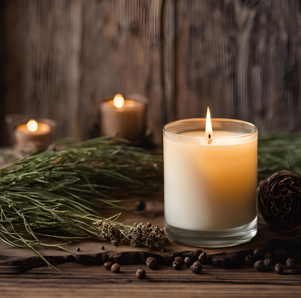 Infused with a captivating blend of vetiver, black spruce, and black pepper essential oils, the Fireside Candle creates a warm, grounding atmosphere. Vetiver brings a deep, earthy scent that is calming and stabilizing, often used for its grounding qualities. Black spruce adds a fresh, woody note, reminiscent of the outdoors, evoking the feeling of sitting near a crackling fire in a forest. The subtle hint of black pepper offers a spicy, slightly sharp fragrance that adds depth and complexity to the blend, while also providing a touch of warmth and energy.